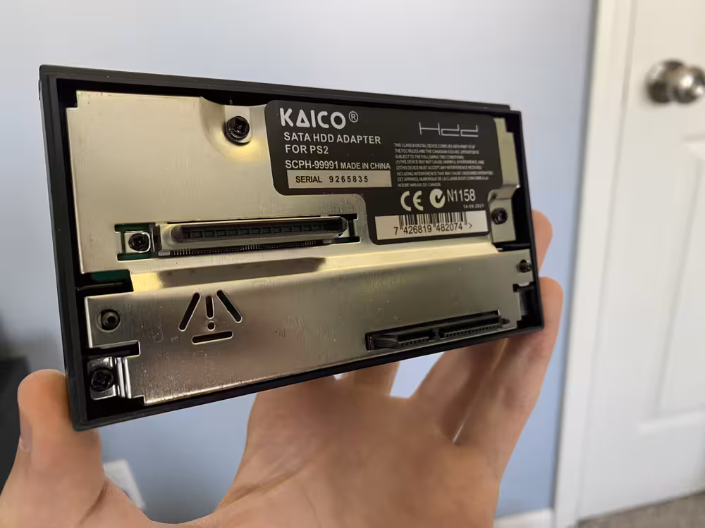 This adapter provides a sort of "U-turn" connection, plugging into the power/data ports on the hard drive, and then connecting to a revealed port on the back of the PS2 unit. If you wished to install a HDD back in the day, you would use Sony's first party Network Adapter to do so, which provides both the connection for the hard drive, while also adding ethernet and dial-up modem ports. However, while these adapters aren't hard to find, they're no longer ideal for our purposes. For one, I personally don't plan on using the networking features of this system (although there are many applications for doing so, ranging from playing games remotely to connecting to fan-run game servers). Secondly, this original adapter was for IDE hard drives. This is a somewhat older HDD standard, being largely replaced with SATA in the following years. Rather than settling on an older, probably smaller drive, or getting an IDE-to-SATA adapter, I chose to try my luck with a 3rd party SATA adapter.